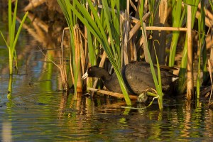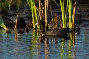 This evenings excitement was 40 minutes with an American Coot. Most of that time it spent in a clump of grass preening. I saw one briefly last year but watching its “Sora-like” behaviour this evening, although briefly, was interesting. Needless to say, photos attached!