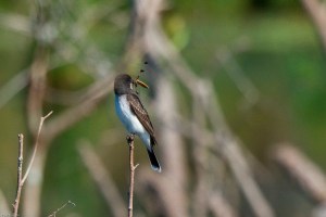 It’s not a good time to be an invertebrate. The Eastern Kingbird nestlings just sit with their beaks wide open and facing skyward for many minutes on end! Even the Viceroy butterfly seems to be at least contemplating a slug! Deana discovered a third P-b Grebe nest. It’s in the larger pond, south-west “quadrant”. These photos were taken June 15th between about 8:30 and 9:30 a.m at Miramichi Marsh. There are young fledged Tree Swallows also.