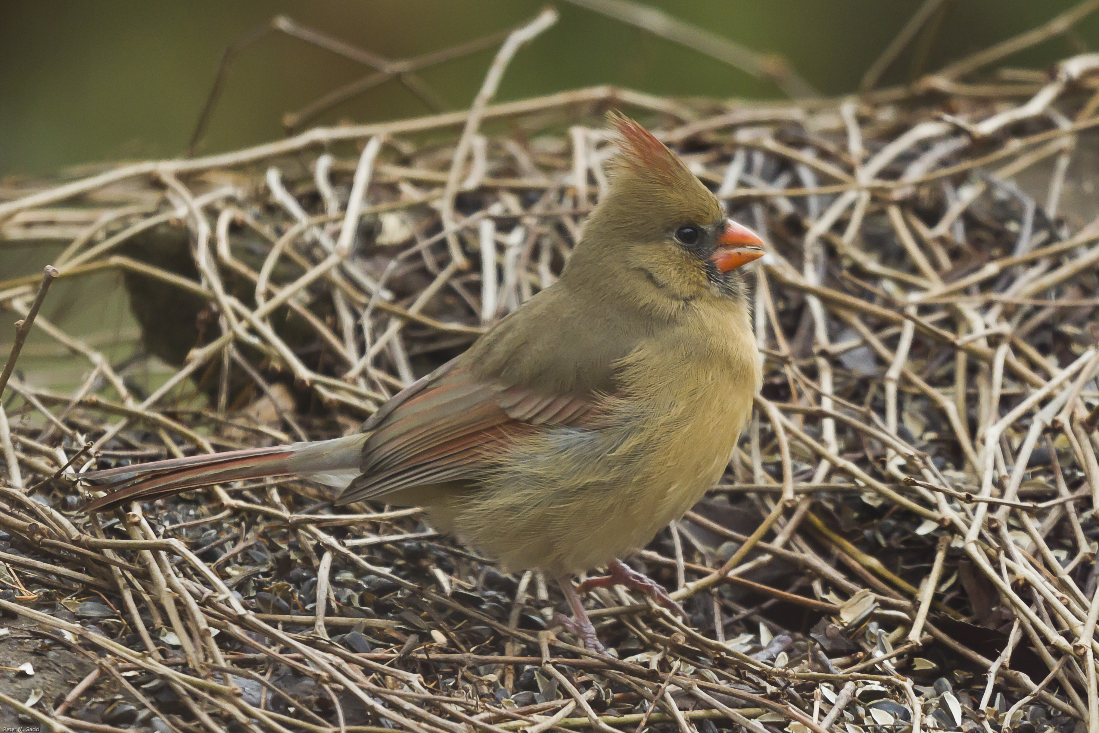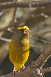 We’ve been sharing a cardinal pair with Anne Assaff (our near neighbour) the last couple of days. Today I spotted a lone Evening Grosbeak at our feeders-in the 80’s we would have dozens of them and could go through bags of sunflower seeds a season- so hoping to see some more but not too many- Deana