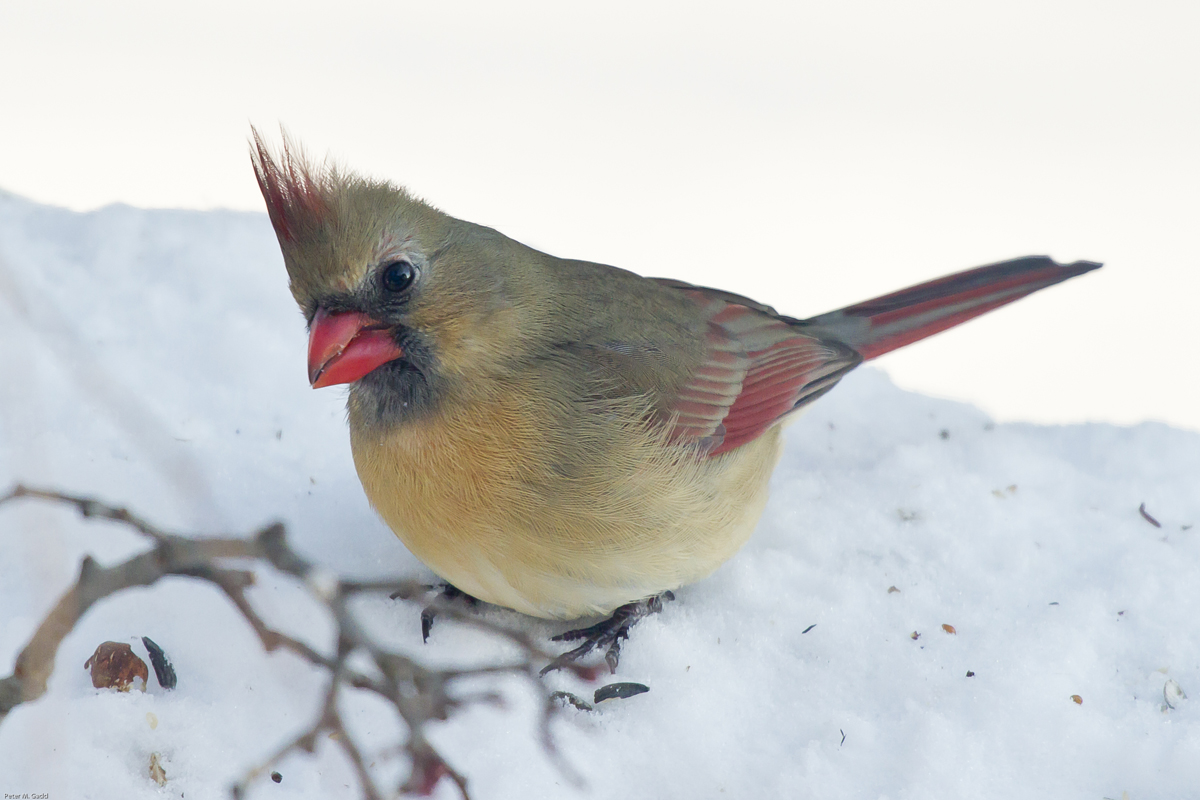 I had a very good opportunity recently to photograph this female Northern Cardinal. We have seen her at our feeders and in the garden for the last two months but she has been very shy. During the recent cold period she may have been more anxious to eat and so, came closer to the house. It’s hard to take just one photo. There are more at http://flic.kr/s/aHsjDJ6RFT .