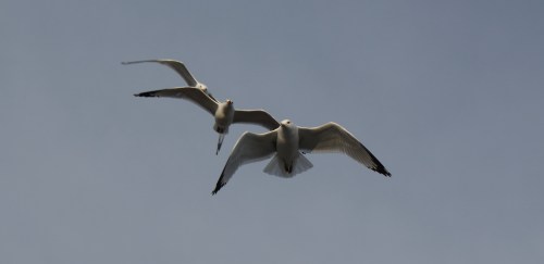 | Ring-billed Gulls practicing formation flying for the upcoming airshow.Jim |
