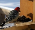 I’ve also attached another photo of the Red-bellied Woodpecker taken by Laura on Jan. 14, 2016, that shows the red on the back of the neck (nape) extending onto the crown characteristic of the male, while the red on the female is restricted to the nape only.