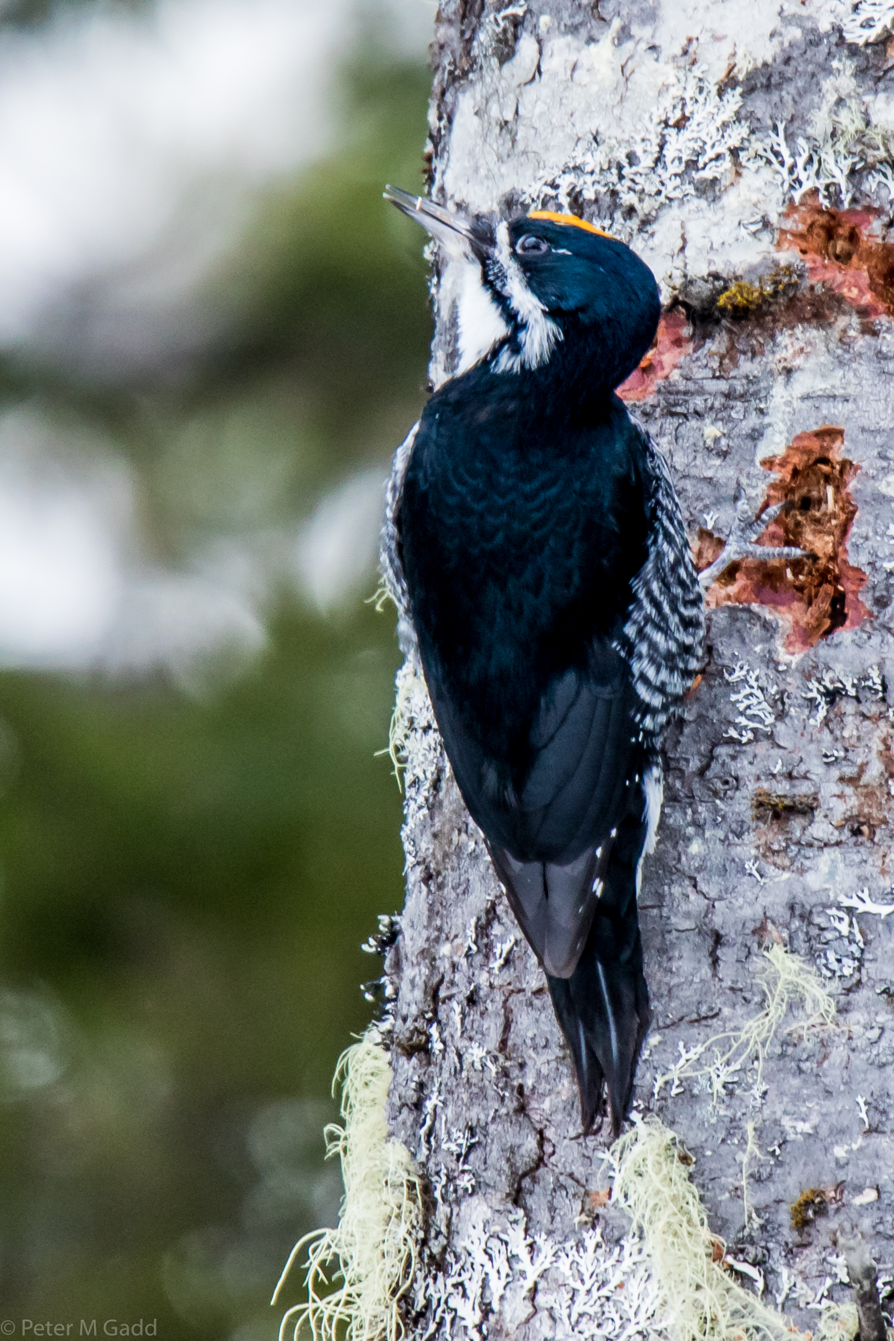 Deana and I took a drive on Hwy 108 today, the Renous-Plaster Rock Highway. We only went about 40 km along. There have been some interesting sightings on 108 over the last few weeks. We didn’t see clearly all that we had hoped but did get some very good looks at a Black-backed Woodpecker, which seems to be more very dark blue than black. Photo attached. As of the other day this bird had not made it to the Northumberland County Winter Bird List. Peter