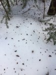 While snowshoeing at the ski club today I came across signs of a Black-backed Woodpecker. These medium sized woodpeckers do not visit feeders, they are associated with burnt areas or boggy areas. You might hear one scraping away the bark, to get at the larvae of beetles within the tree. Peter saw this woodpecker on the ski trails last year, not far away from this site.
