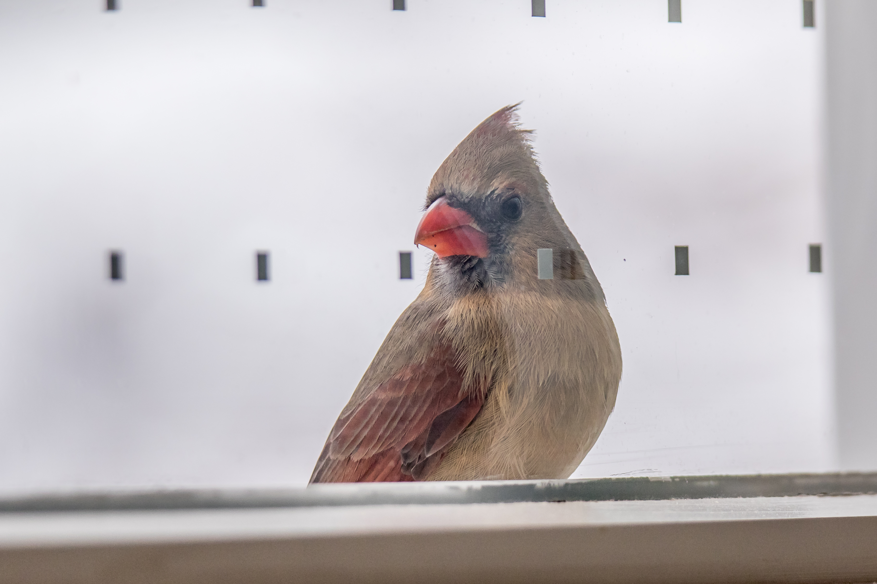 To get started here is a photo of a “Peeping Cardinal” at one of our windows today!