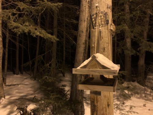 Deana just came back from a ski at the MCCSC. At the bird feeder near the trail head she found a Northern Flying Squirrel (photo) . As she was watching a second sailed in!