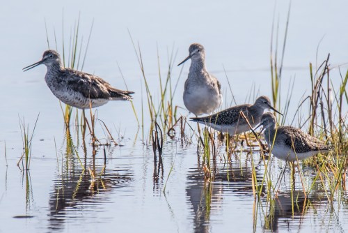 Stilt Sandpipers and a Red-necked Phalarope