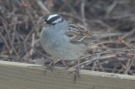 Deana has done some hurried research and suggests that the second White-crowned Sparrow is an “Intergrade”, the product of two sub-species of the same species, rather than a hybrid, the product of two different species.