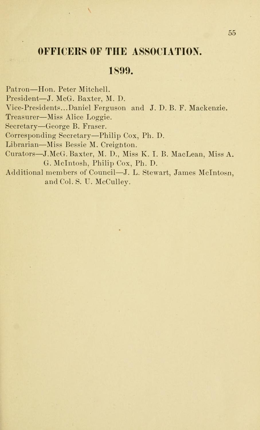 » officers of the natural history association of miramichi 1899