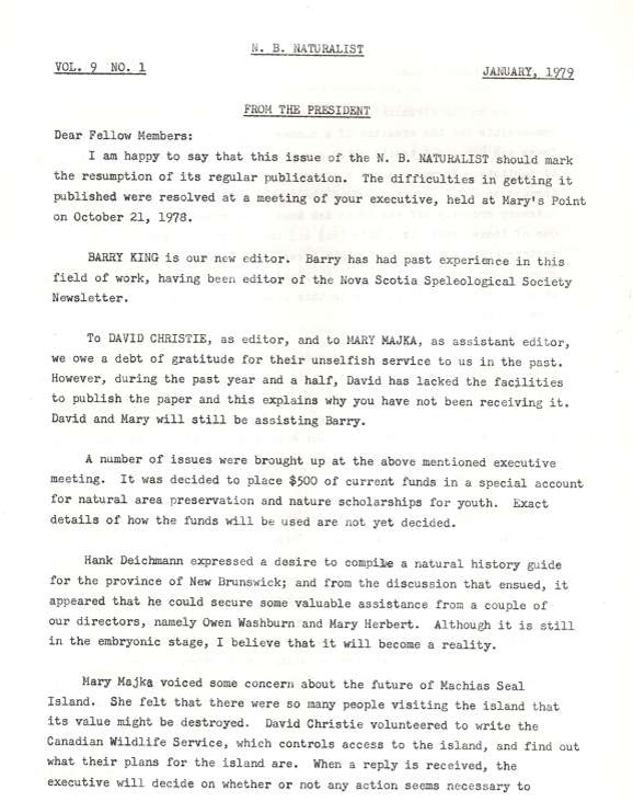 History of Miramichi Naturalist Club