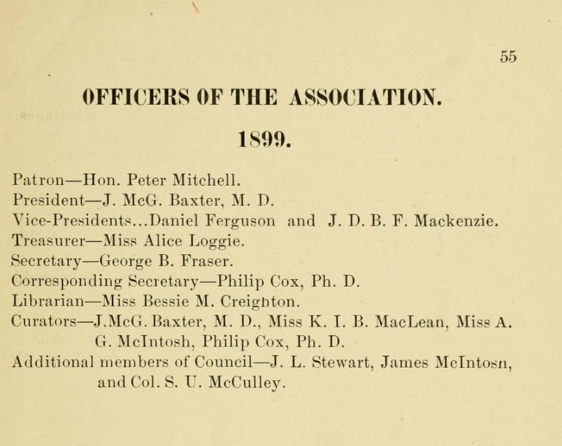 Miramichi Natural History Association 1897 to 1913 – Chatham NB