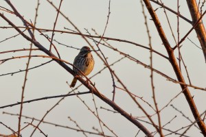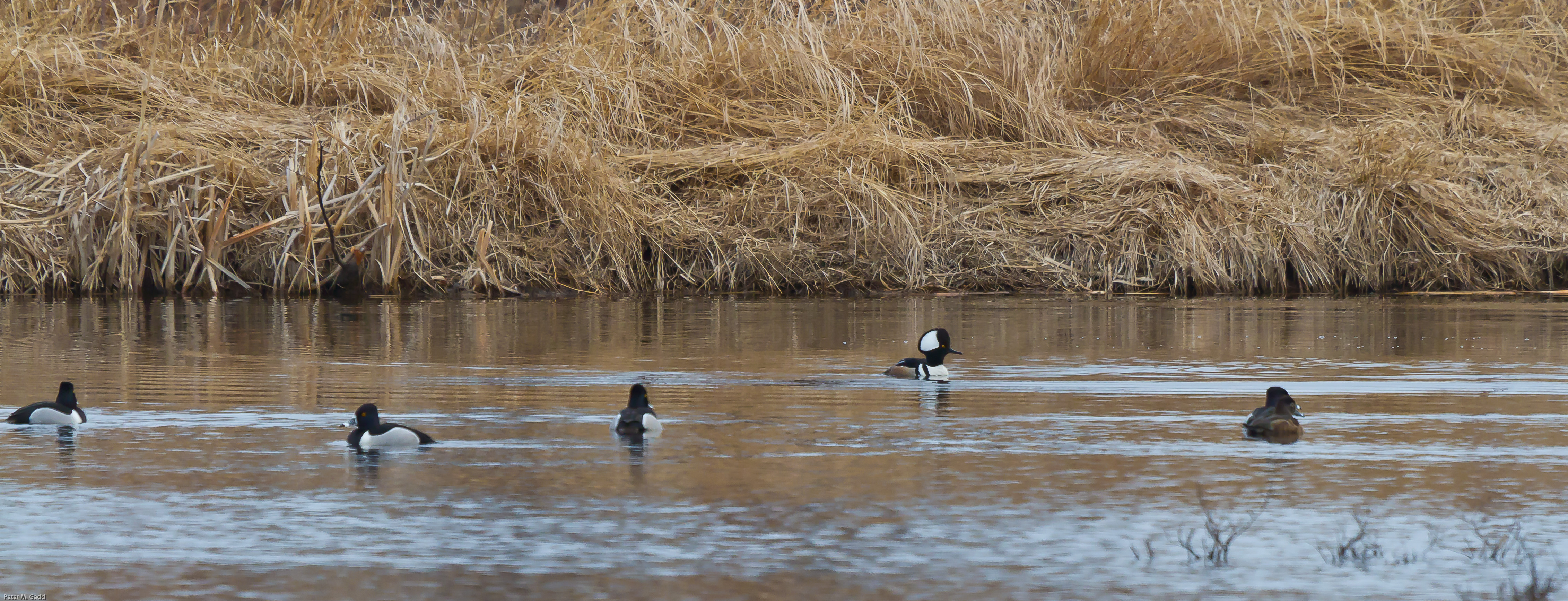 Tuesday April 17th – interesting day: Battle of Beaver Island (MM)… Canada Geese pair attacked other nesting pair by water from the north and battle ensued. Could not tell who won, they were wearing the same uniform! Visit to Hay Island resulted in seeing a number of interesting song birds as well as some usual waterfowl. Day ended with a visit (contrived) from a pair of barred owls.
