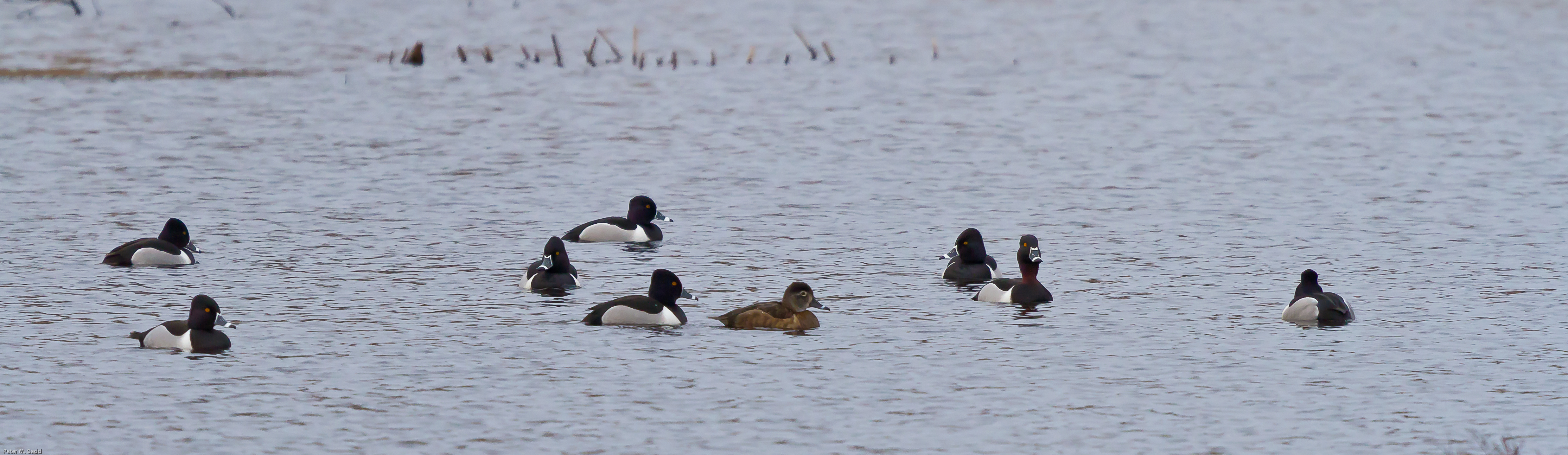 Downy Woodpeckers, Ring-billed Gulls, Red-winged Blackbirds, Canada Geese, Common Snipe, Green-winged Teals (5 drakes, 1 “girl”), Ring-necked Ducks (8 drakes 1 “girl”), Grackles, Pied-billed Grebes (3), Hooded Merganser (1 drake), Mallards (about 5 pr), Black Ducks (1 pr), Song Sparrows.  No Tree Swallows yet but Deana says they have arrived in southern NB so any day now.