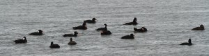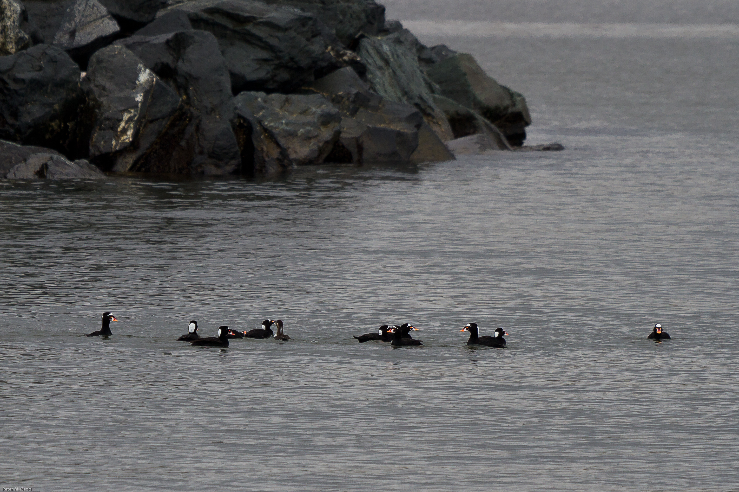 Surf Scoters at Escuminac Wharf April 10 2012. (Also seen where Rock Pigeons, Song Sparrows, Crows, Snow Buntings, Great Black-backed Gulls. Ring-billed Gulls, Great Blue Herron, Double Crested Cormorants, Surf Scoters, Black Scoters, Long-tailed Ducks, Northern Gannets.)